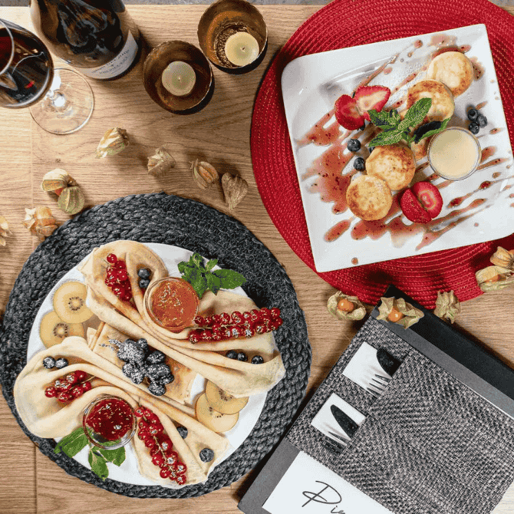 Im Großen und Ganzen wird unsere Küche zweifellos international sein, wenn man bedenkt, dass Berlin selbst eine multinationale Stadt ist, aber als Ukrainer können unsere Köche und Konditoren nicht umhin, unsere nationalen Gerichte in die Speisekarte aufzunehmen. Daher wünschen wir Ihnen von Herzen eine gute Zeit in der Cafébar Pirouette